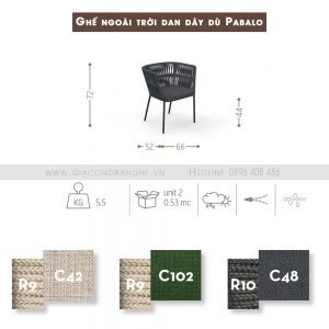 Ghế ăn ngoài trời cao cấp SKLC031 có khung được làm từ kim loại thép chắc chắn và được sơn tính điện chống gỉ sét và có độ bền cao. Sử dụng dây dù có nhiều màu sắc, được đan nghệ thuật bằng những thợ có tay nghề cao mang lại nét đẹp thẩm mỹ cao.