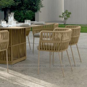 - Bàn ghế đan mây nhựa, đan dây dù.