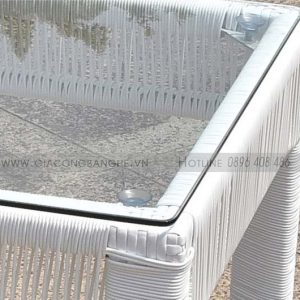 Bộ bàn ghế mây nhựa SKLC065 dùng dây PE ( mây nhựa) cao cấp, được đan bằng tay thủ công, không chứa formaldehyde, thân thiện với môi trường, chống tia cực tím, chống thấm. Bàn kèm theo kính kính cường lực, kính cố định bằng nút siêu hút NC, chắc chắn và độ thẩm mỹ cao.