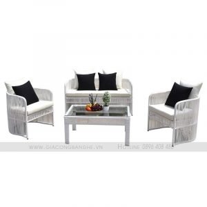 - Chất liệu: Sắt/ nhôm/ inox sơn tĩnh điện, vải ngoài trời, mousse D20/D30/D40/DWF, mây nhân tạo, dây dù,…