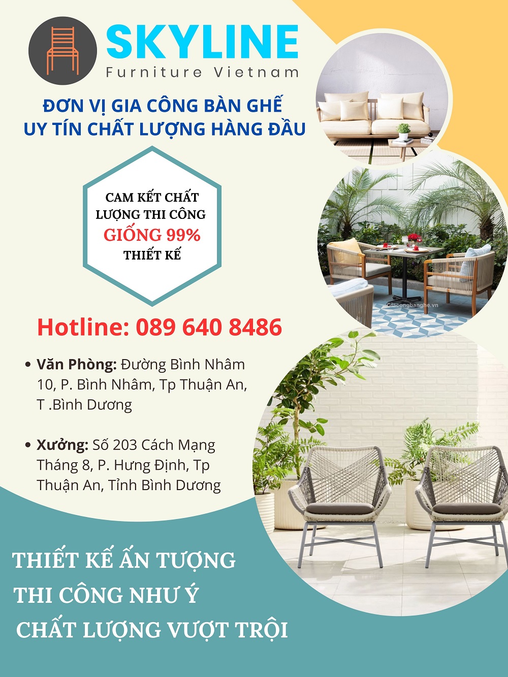 Skyline Furniture kinh nghiệm lâu năm và sự uy tín cao trong lĩnh vực thiết kế và gia công bàn ghế, nhất là các sản phẩm nội thất giả mây. Đây là một trong những địa chỉ được người dùng đánh giá cao về chất lượng và độ uy tín.