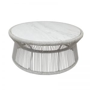 Bàn trà mặt đá SKLT010 độ bền chất lượng cao, khung được làm tư nhôm sơn tĩnh điện của nó được bọc một cách chuyên nghiệp bằng dây acrylic cao cấp chịu được mọi thời tiết với lớp hoàn thiện màu xám bạc.