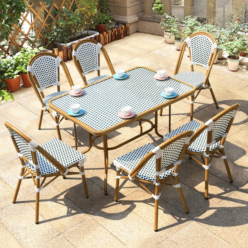 Bộ bàn ghế khung sắt đan mây sân vườn phong cách cổ điển