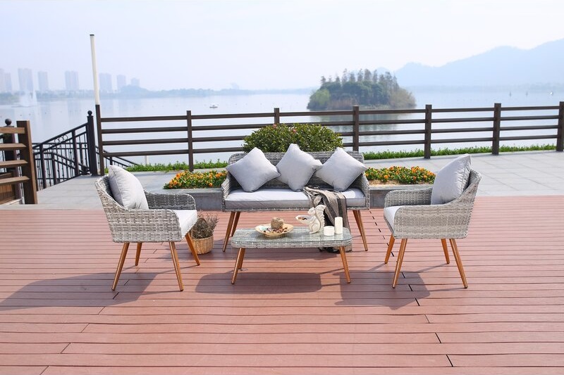 Bộ bàn ghế ngoài trời SKLC041 mang phong cách cổ điển của đồ nội thất ngoài trời và thêm một chút hiện đại với chân nhôm sơn tĩnh điện, kết hợp với vải thiết kế bền, chống tia uv, chịu thời tiết tốt, thoáng nhanh khô, bộ ghế sofa với đệm này là sự bổ sung hoàn hảo cho sân vườn ngoài trời.