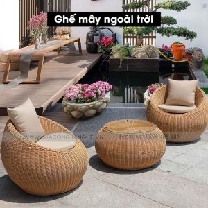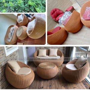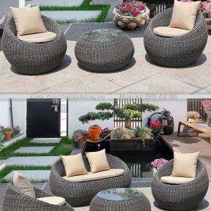 Bộ sofa mây ngoài trời hình quả trứng SKLC068