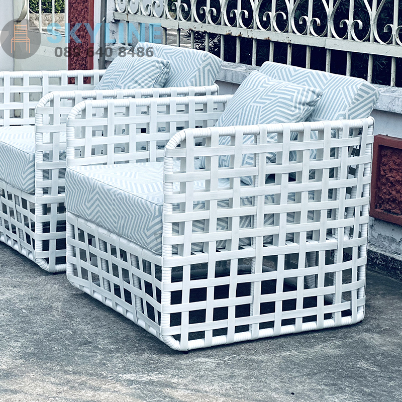 Ghế cafe mây nhựa được sản xuất từ nhựa cao cấp, có khả năng chịu được ánh nắng mặt trời, mưa và gió mạnh mà không bị phai màu hay hỏng hóc. Điều này giúp cho ghế có thể được sử dụng lâu dài trong không gian ngoài trời mà không cần lo lắng về việc bảo quản.