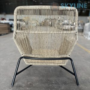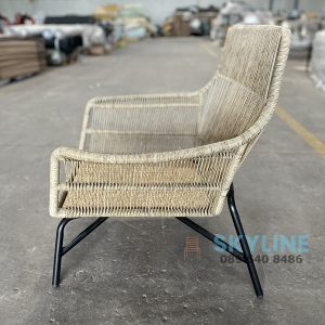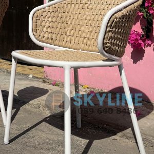 Ghế sử dụng vật liệu sắt làm khung ghế cho độ bền và khả năng chịu lực tốt, ghế được đan bằng sợi nhựa poly màu sắc giả mây hoặc màu tuỳ chọn, sợi nhựa tổng hợp kháng tia UV giúp hạn chế bị hư hao khi sử dụng dưới ánh nắng mặt trời.
