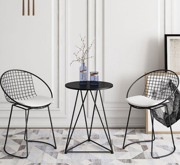 - Với chất liệu chính là sắt, bộ bàn ghế cafe chân sắt là lựa chọn vô cùng hợp lý khi bạn cần tìm sản phẩm sử dụng ngoài trời.