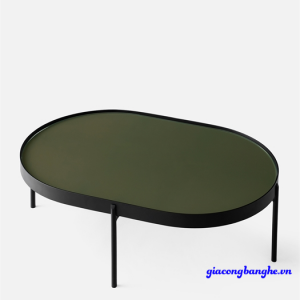 Bàn trà SKLT002 có mặt bàn bằng kính cứng phản chiếu đẹp mắt xung quanh nó. Các vật liệu hiện đại nhấn mạnh tính thẩm mỹ sạch sẽ và phong cách.