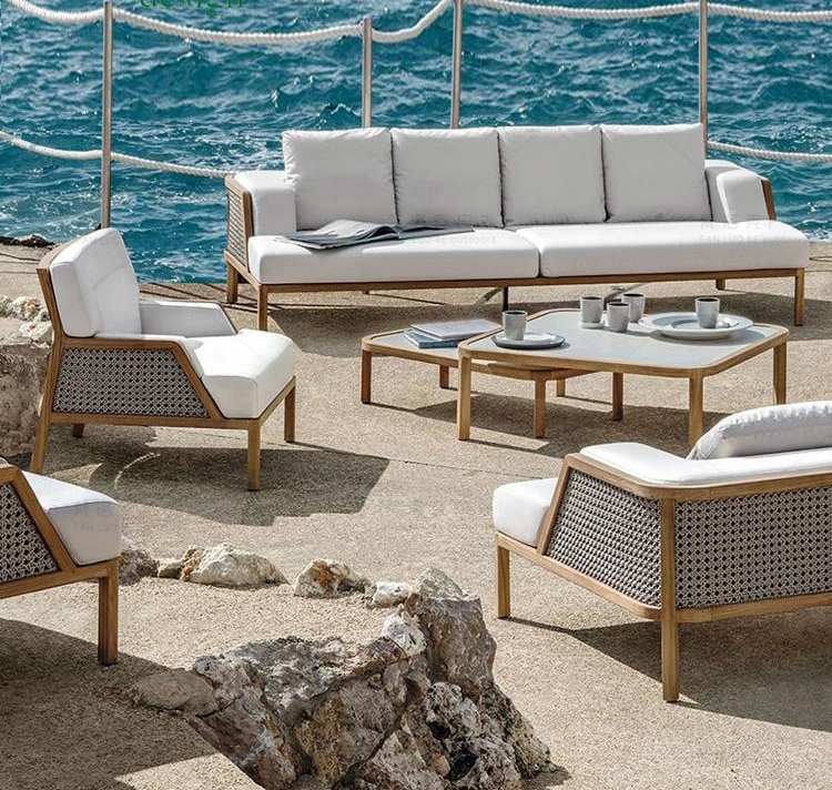 Khi kết hợp gỗ Teak và mây ngoài trời, ta có thể tạo ra những sản phẩm sofa sang trọng và đẳng cấp, phù hợp với không gian sân vườn, ban công hay hồ bơi. Sofa gỗ Teak kết hợp mây ngoài trời giúp không gian ngoài trời trở nên thoáng đãng và thoải mái, vừa giữ được tính thẩm mỹ cao, lại tiện dụng và đa năng.
