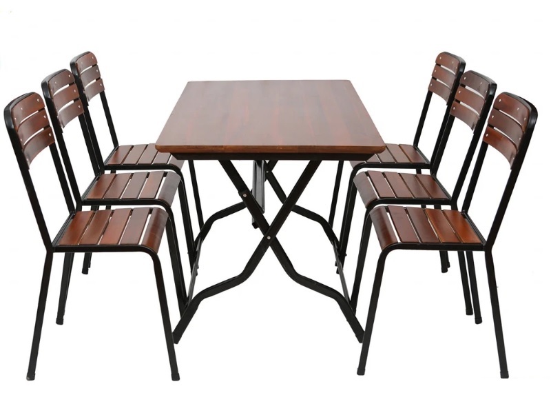 Bộ bàn ghế khung sắt mặt gỗ